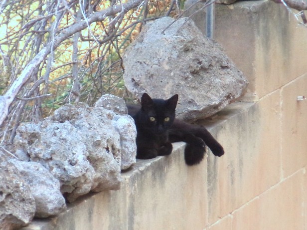 For the first time we had a visiting black cat, a male who we called Longtail. He had opalescent yellow-green eyes and was a handsome young man.