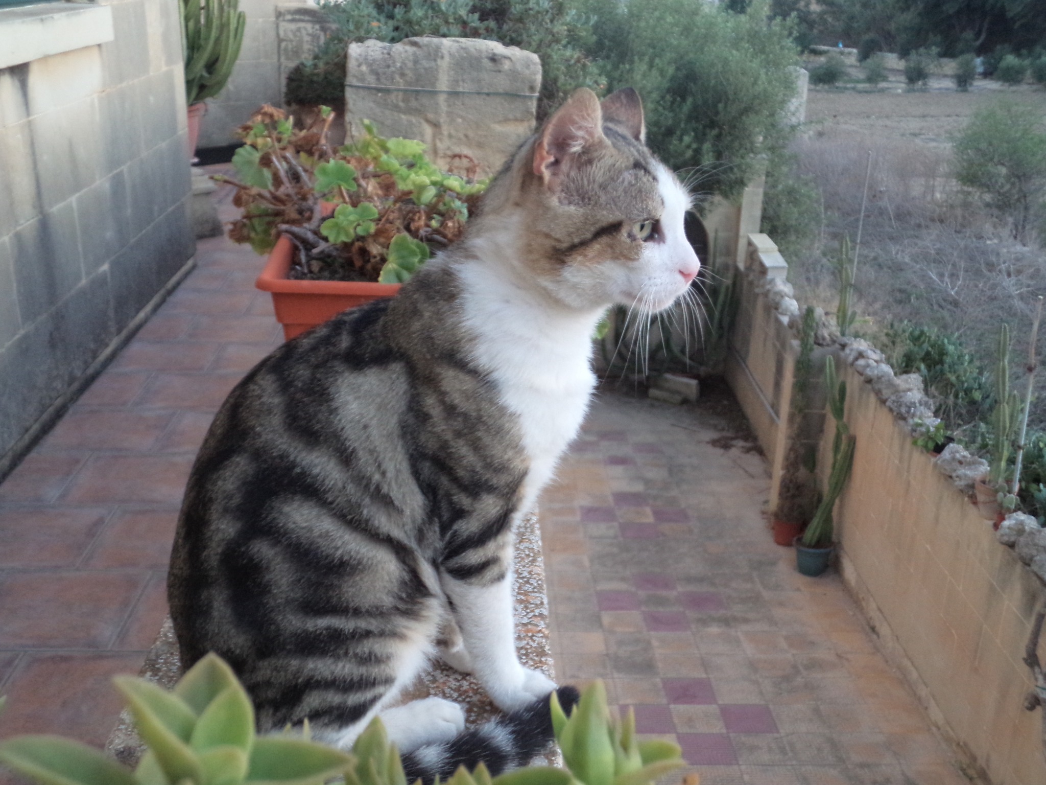 Mystery was exactly that – a mystery. Even from the storeroom roof (which was probably 50ft away) s/he looked terrified that a human might somehow approach, and cautiously travelling the 50ft or so from the field to the front path could take an hour. Needless to say, visits to the food bowls were always after dark. Even choosing between the food bowls was a lengthy process – wet or dry? Dry or wet? Or maybe a drink first. There was just too much choice.