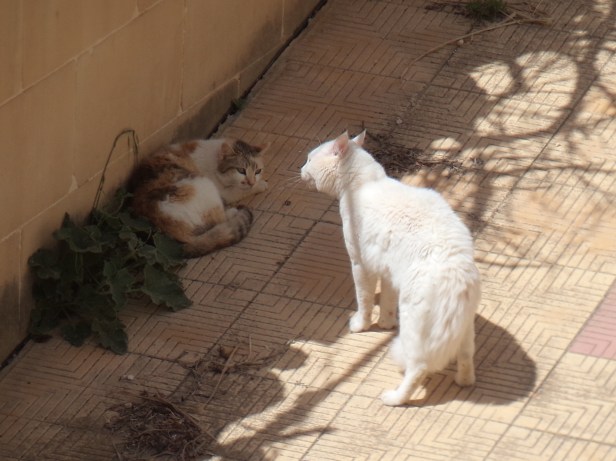 A handsome but completely feral gentleman called Kbir was a new face. He was a big, strong and well-built cat who must have been either an excellent hunter, or fed by someone else in the neighbourhood. It’s possible he was Greyfur’s father as their markings were similar, and The Cat seemed very tolerant of him.
