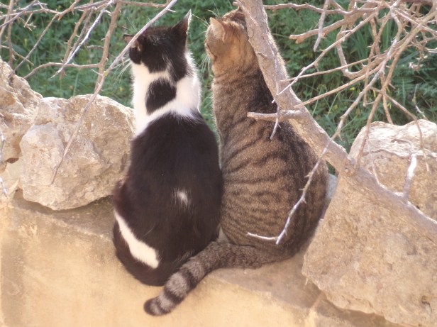 It was now that The Cat, despite her initial aversion to Dinky, decided to accept him as a member of The Garden Family, and they started to spend time together, patrolling the garden walls or napping together on one of the water tanks. They were unlikely companions, but somehow it worked for them.