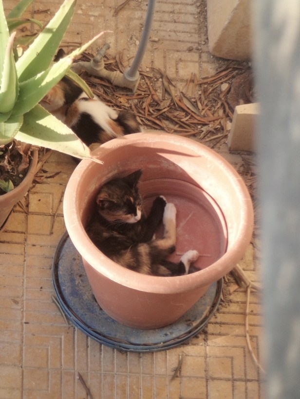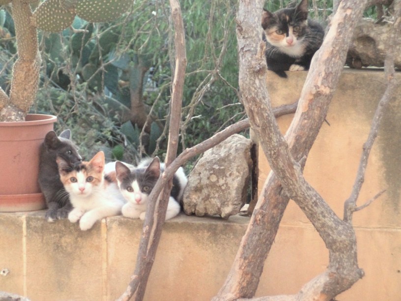 Then there was one very shy, completely grey kitten who we named Storm. She reminded us of Kiwi’s kittens Stardust and Ariel and we wondered whether this could be Stardust’s daughter – we had seen no other grey cats in the area, after all.