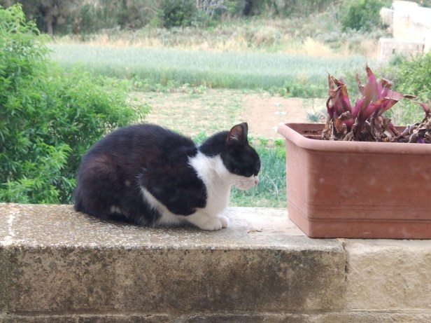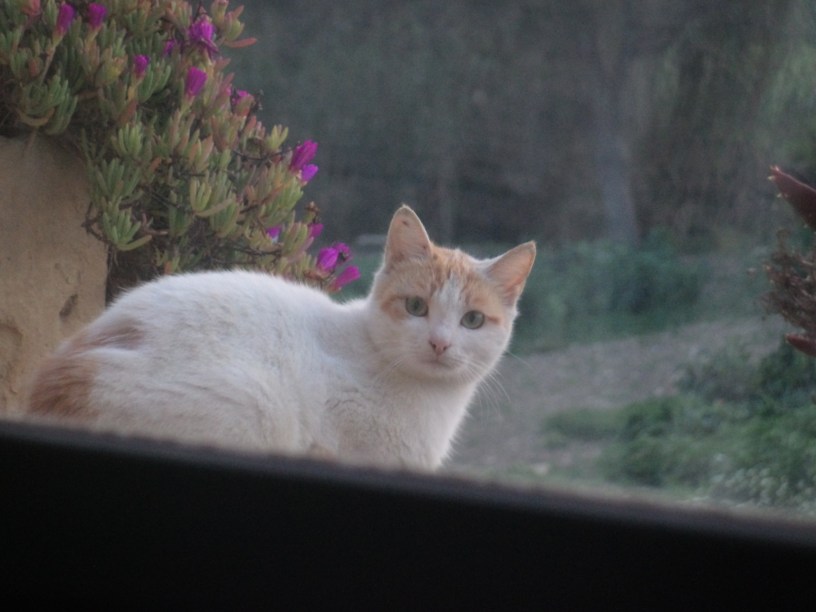 Phantom was a loner, a stanchly independent lady who made her home on the far side of the fields opposite, walking back and to twice every day for food and water. It was a good place for an outdoor cat as there were unfinished buildings which provided shelter, and gardens and fields for hunting. But, all the same, for a small cat, it was a long walk.