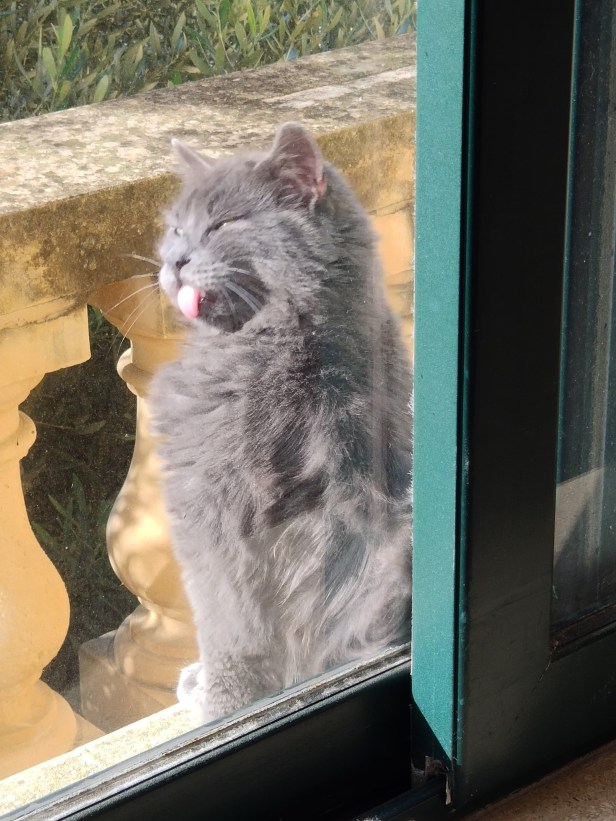 The line of grey cats which had started with Kiwi’s kittens Stardust and Ariel was continuing. We had always wondered whether Stardust was the father of Twilight’s (grey) daughter Storm as we knew of no other grey cats in the neighbourhood.