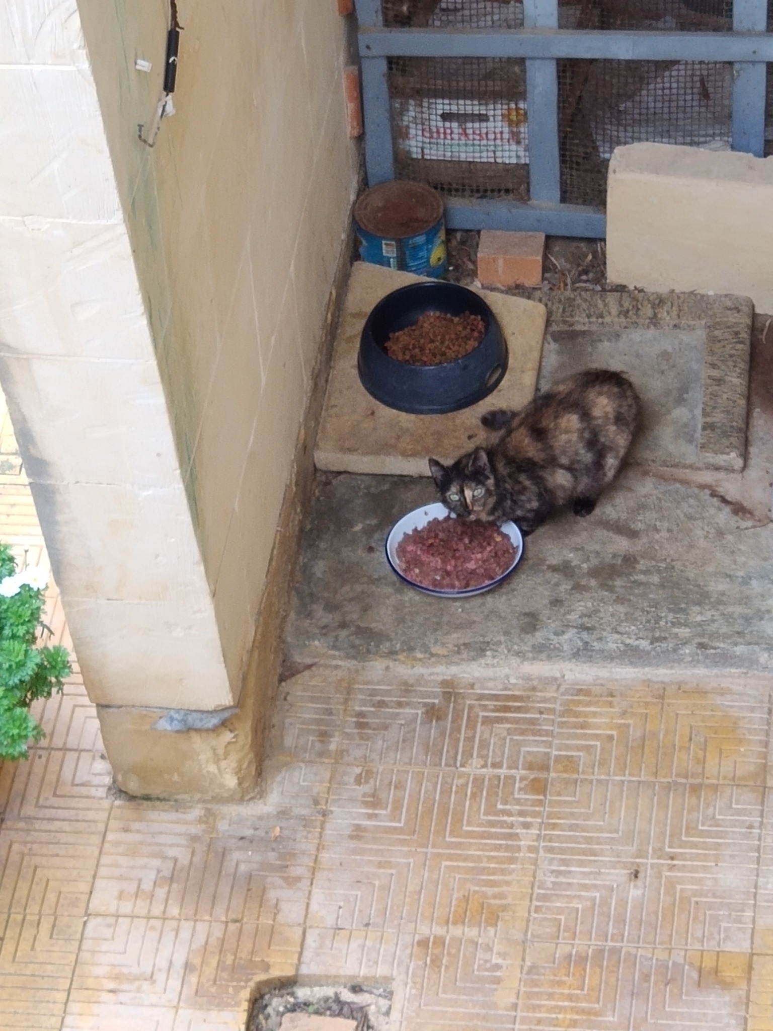 So this is a snapshot of the Visiting Cats in January of that year. There was one new face, a pretty little brindle tortoiseshell whose name (Blackfur told us) was Polka. She probably had a home nearby, but preferred to roam.