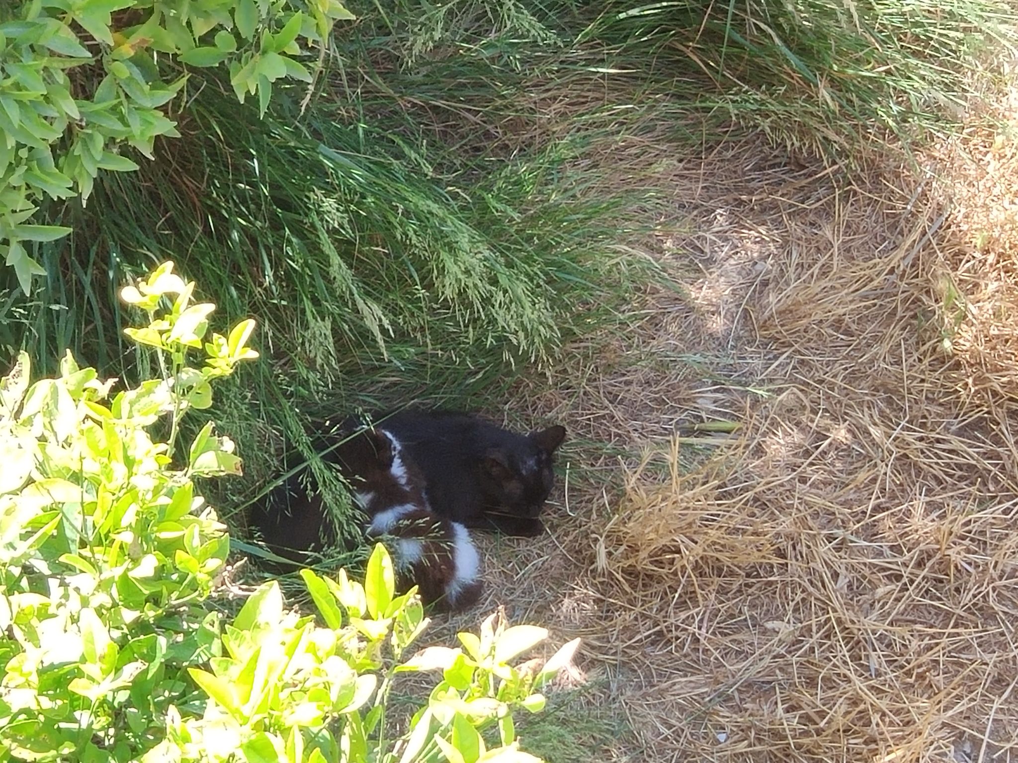 Oregano was a lovely kitten, a friend to everyone, and was generous with his cuddles and accepted by all. He was happy eating from any of the food bowls and the other families always made room for him when he arrived. He didn’t develop as he should, but his time was happy, if much too short.