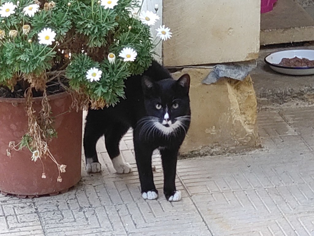 The Visiting Cats were not untouched by the various ailments in the cat population, but adult cats were more able to fight off viruses than were kittens. And so the Visiting Cats continued to visit, although there were fewer new faces than there had been before, and not as many kittens. There were still a lot of black-and-white cats, although Izit was still a regular at the feeding bowls, flying the flag for peach-coloured cats and almost definitely the father of The Cat’s great-grand-kittens Pascal and Pascha; and Mr Bright and Thundercat were still out and about but there were not as many orange cats as there had been a few years ago when The Cat was courting.