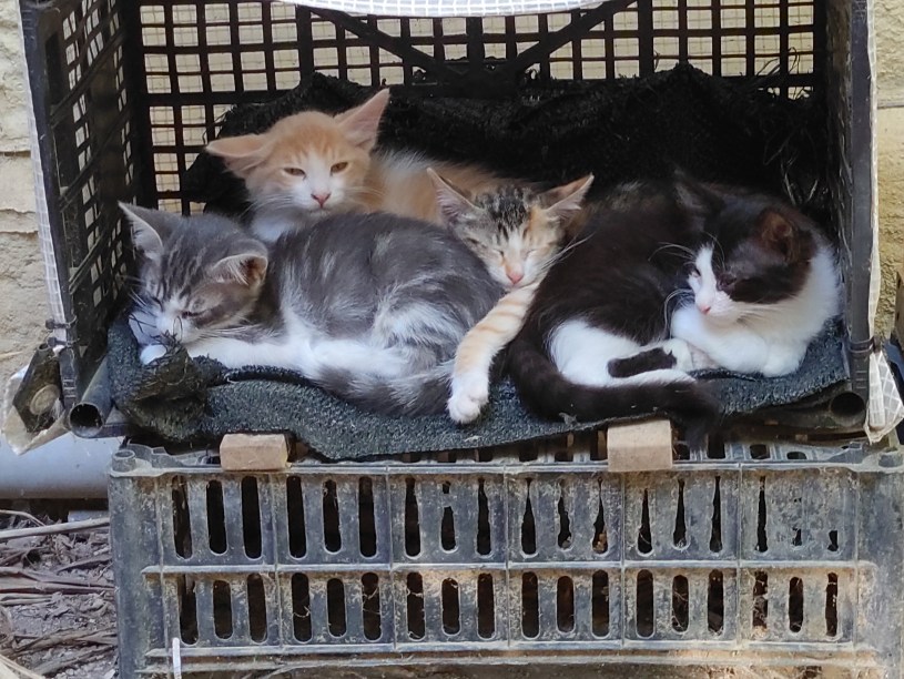 Flora’s younger daughter Pippin now had her own family, Pascal and Pascha (The Cat’s great-grandsons). She was an excellent first-time mother and was enjoying her new role. Unfortunately, her kittens had suffered with the viruses that spring and it seemed that Pascal and Pascha would both be left partially-sighted.