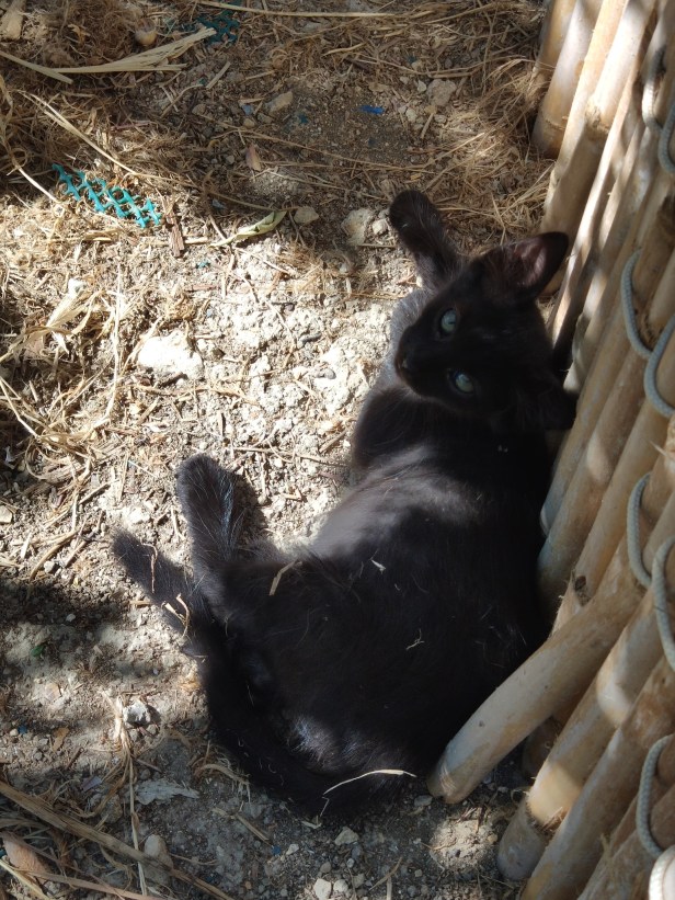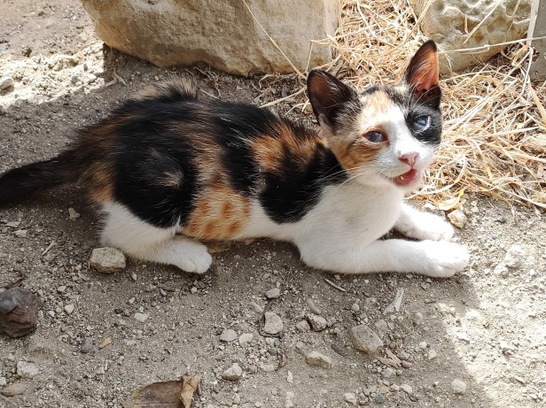 Visitor’s daughter Cracker had brought her family from the fields for weaning. It was the first time that there had been a tabby kitten in the garden and Mr T (as we called him) must have been the son of il-Ħadd.