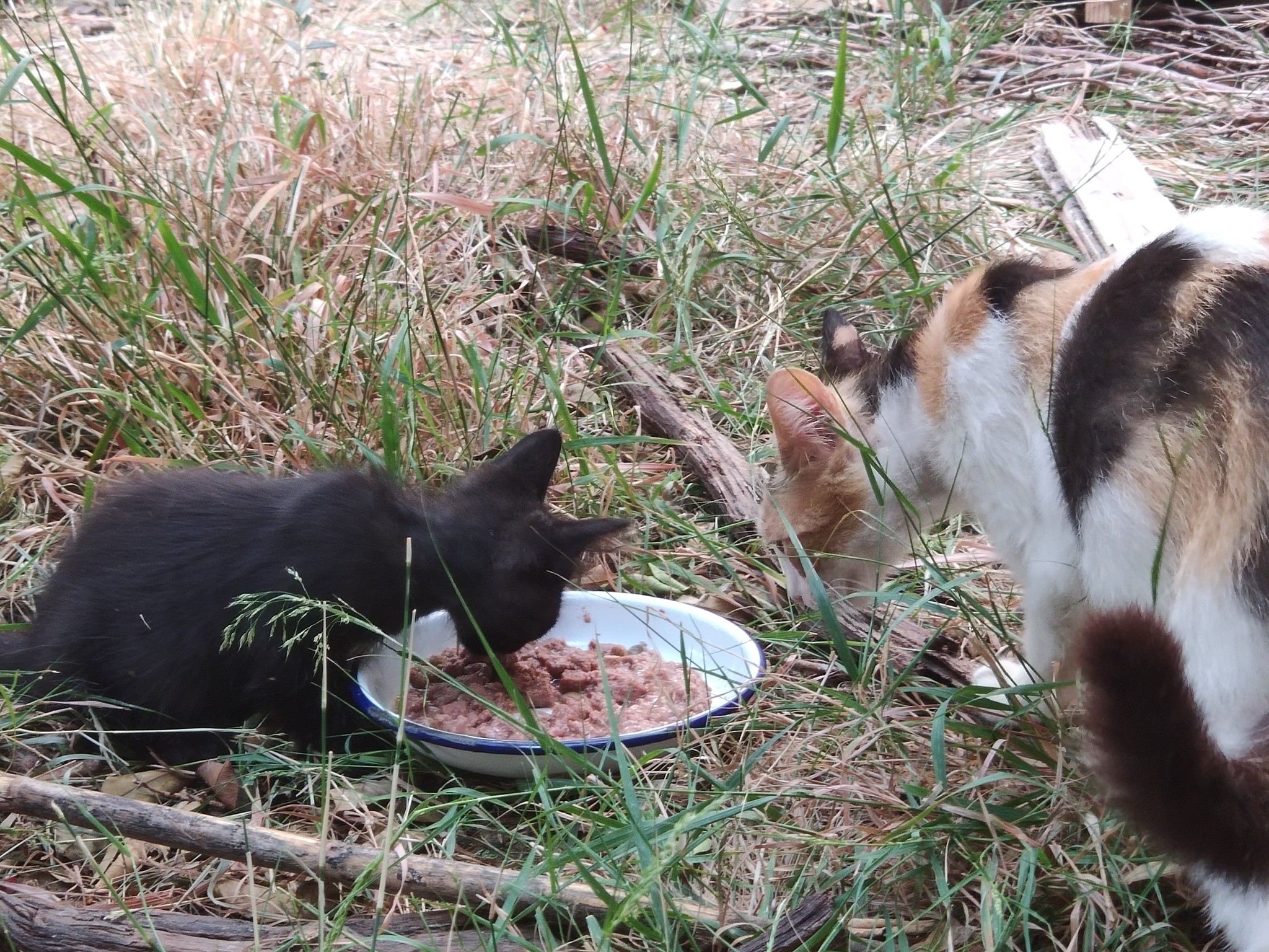 After the sad loss of Swallow, the remaining three of Dawn’s kittens were doing well. Dawn had been on edge and very anxious while her kittens were out in the fields, but now with them in the garden she was much more relaxed.