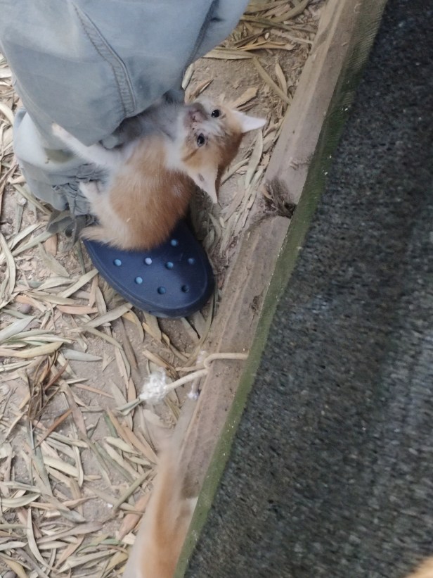 …a sight which will be familiar to many cat feeders – the Great Ascent of The Human’s Leg. It’s one of those notable events in the life of a kitten.