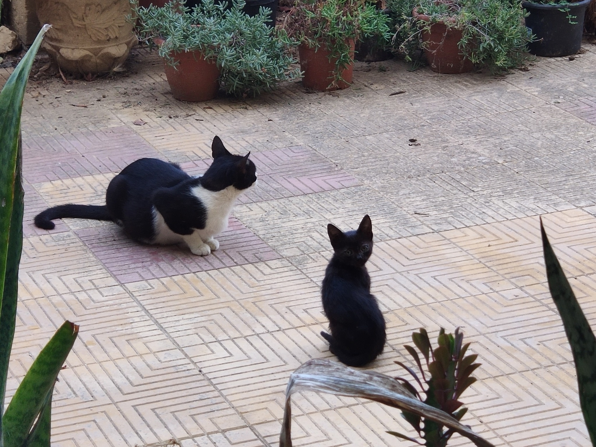 Having been born during that harsh summer, none of the kittens seemed strong, but they were a happy monochrome bunch and enjoyed exploring while their mother watched proudly.