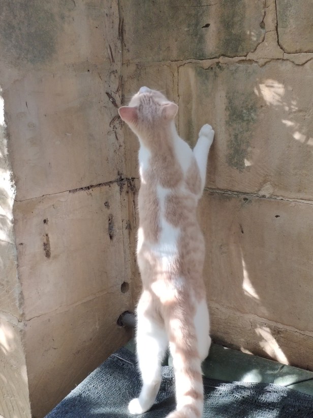 Like any other young cat, he wanted to explore. He climbed the olive tree, patrolled the top of the high garden walls and discovered the first-floor terrace, all much to the humans’ consternation – and all without any accidents or injuries.