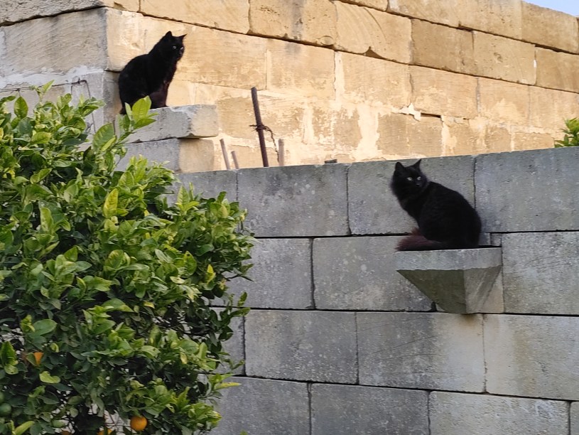Some years ago, Visitor Cat, who had been chased out of the garden on numerous occasions by The Cat, had given birth to identical twin girls. They were both black with a tiny white patch under their chin, and we named them Cheese and Cracker. As they grew up, they became no less similar and, by the time they were adults, it was possible for only a trained eye to tell them apart physically, although in character they were quite different. They did not appear to be particularly strongly bonded, but would often appear simultaneously in the garden for meals, but coming from opposite directions.