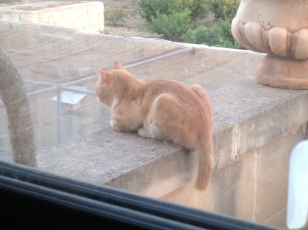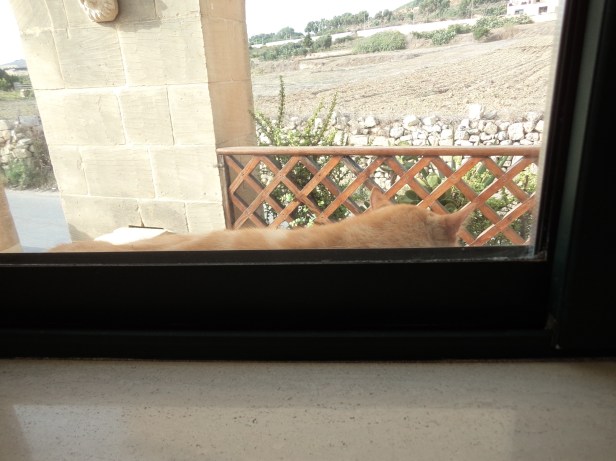 Ana’s intentions when he was guarding our neighbours’ aviary were probably not as friendly, but, as the aviary was enclosed, all Ana could do was to observe and occasionally lick his lips.