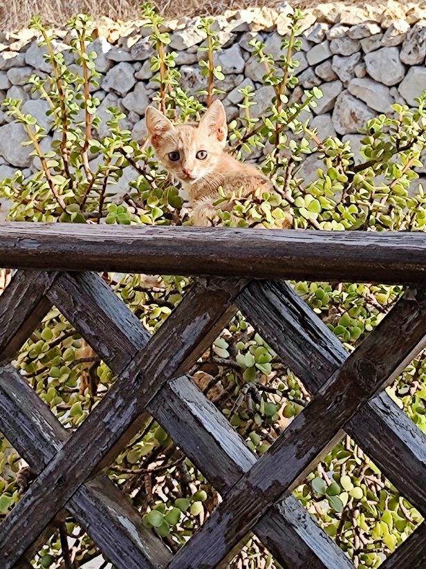 This was one of Flora’s kittens (and The Cat’s grand-kittens) who had no intention of leaving his lookout post in the front troughs at the side of the road.