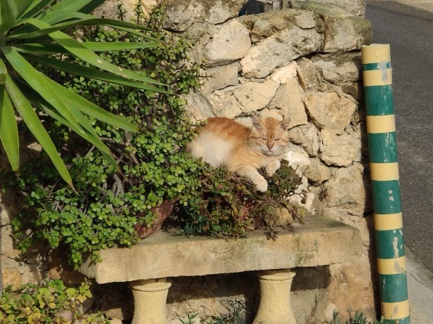 The wall behind him was a shortcut from the field to the drive, and many a cat must have screeched to a halt atop the wall on seeing one of the most formidable of the local alpha-males in residence on the bench below.