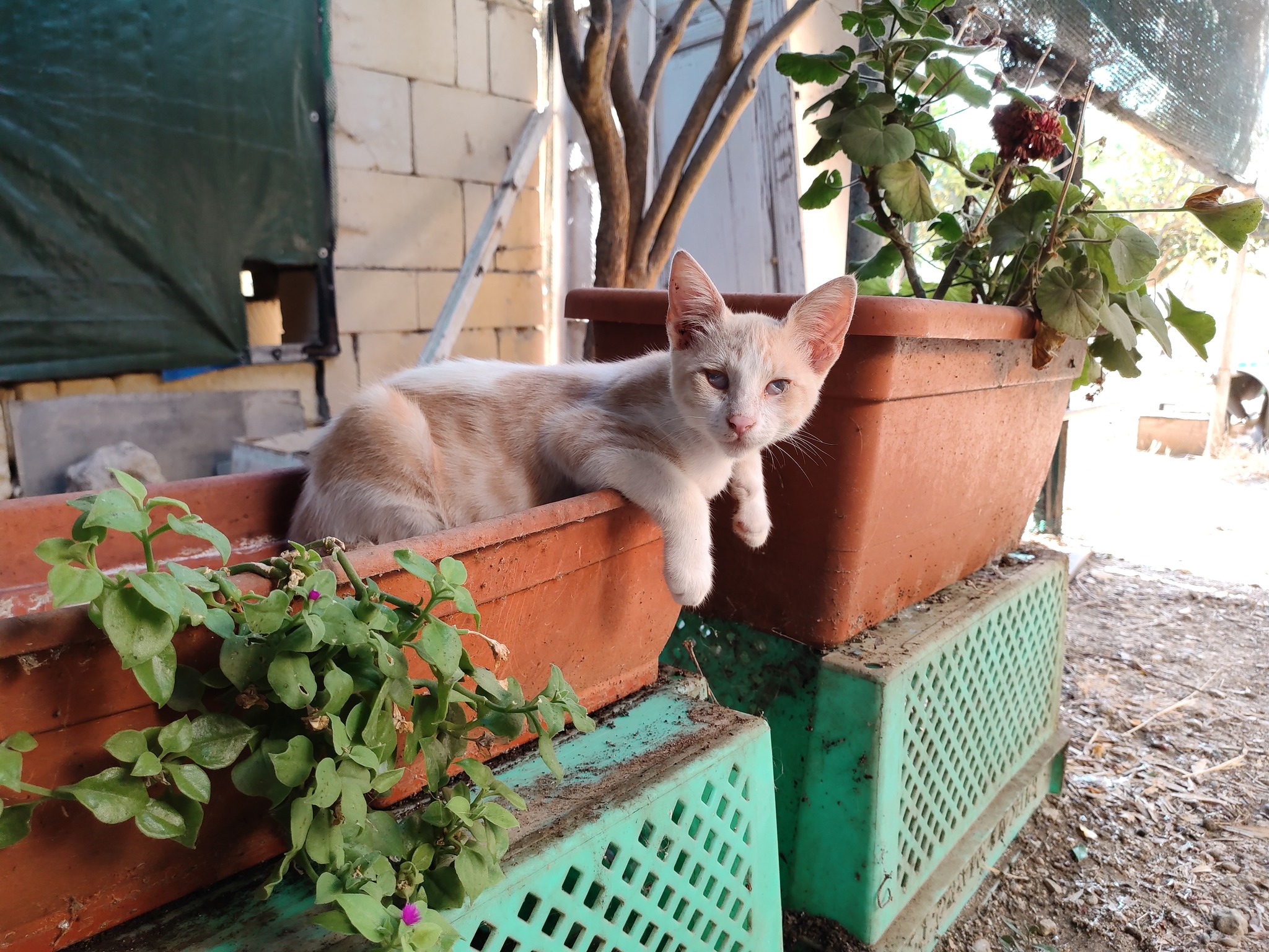During the hot summer months, these troughs were in great demand. Cats and kittens, like Pascha, would reserve their place immediately after breakfast, and sleep the day away on the cool soil in the shade.