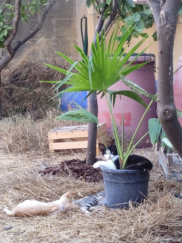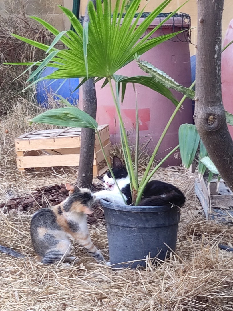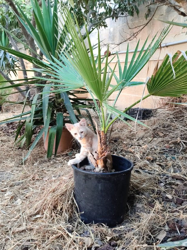 These new palms were bought to provide extra shade for the cats as they (plants and cats) grew.