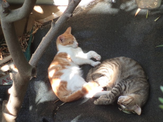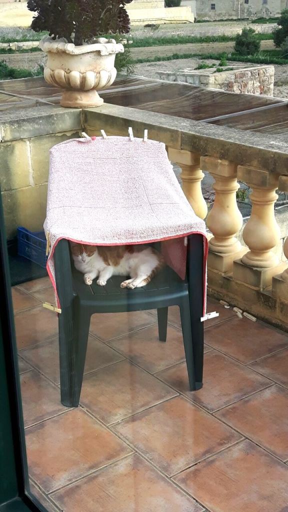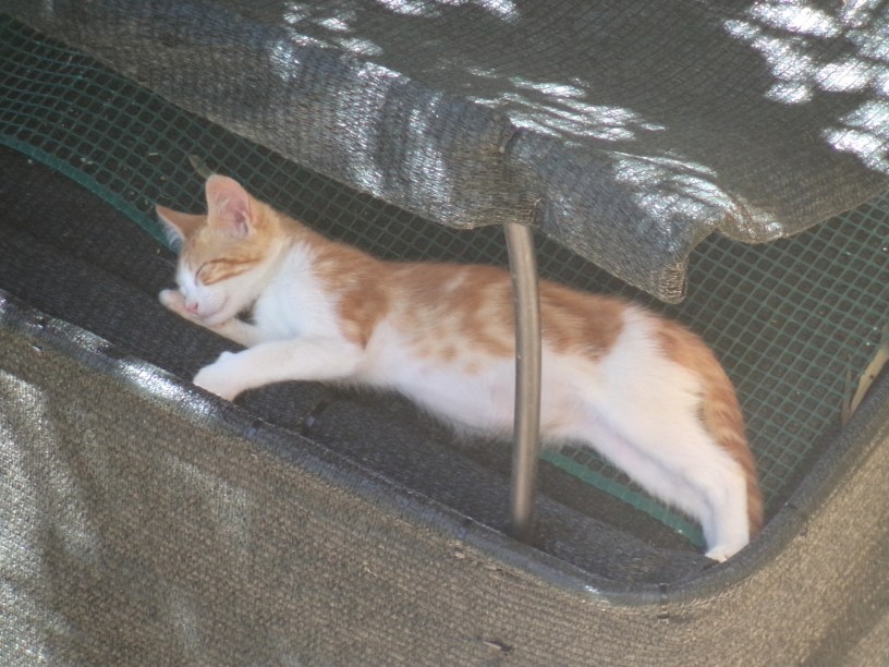 But, despite Lightning’s young age and small size, he was a self-assured kitten and clever enough to realise that this initial antagonism would dissipate, so long as he kept a low profile. So, after we successfully tempted him back into the garden (and away from the side of the road where he had been hiding) with a bowl of food, he hid behind a water tank for a week, emerging only at dawn and dusk.
