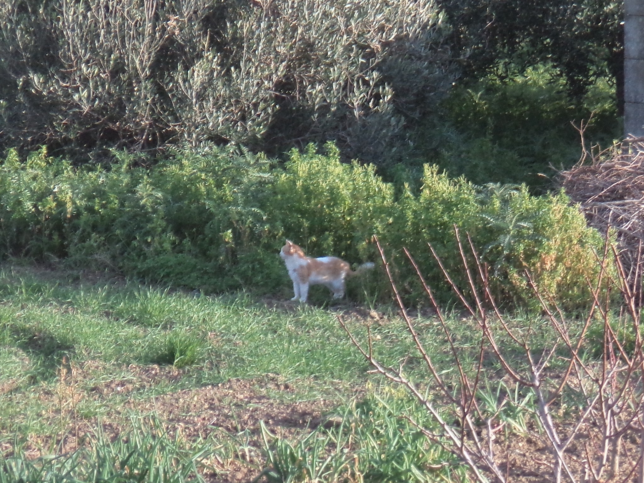 The first sighting of Ghost Cat was just after Visitor Cat had been chased into a dense clump of bamboo by a pack of dogs. Sadly we never saw Visitor again, but only minutes later, a cat emerged from the same area resembling Visitor in build and with the trademark big, fluffy tail, but with much more muted colours. She walked slowly across the fields back towards Visitor Cat’s home garden and she resembled her so much that we named her Ghost Cat.