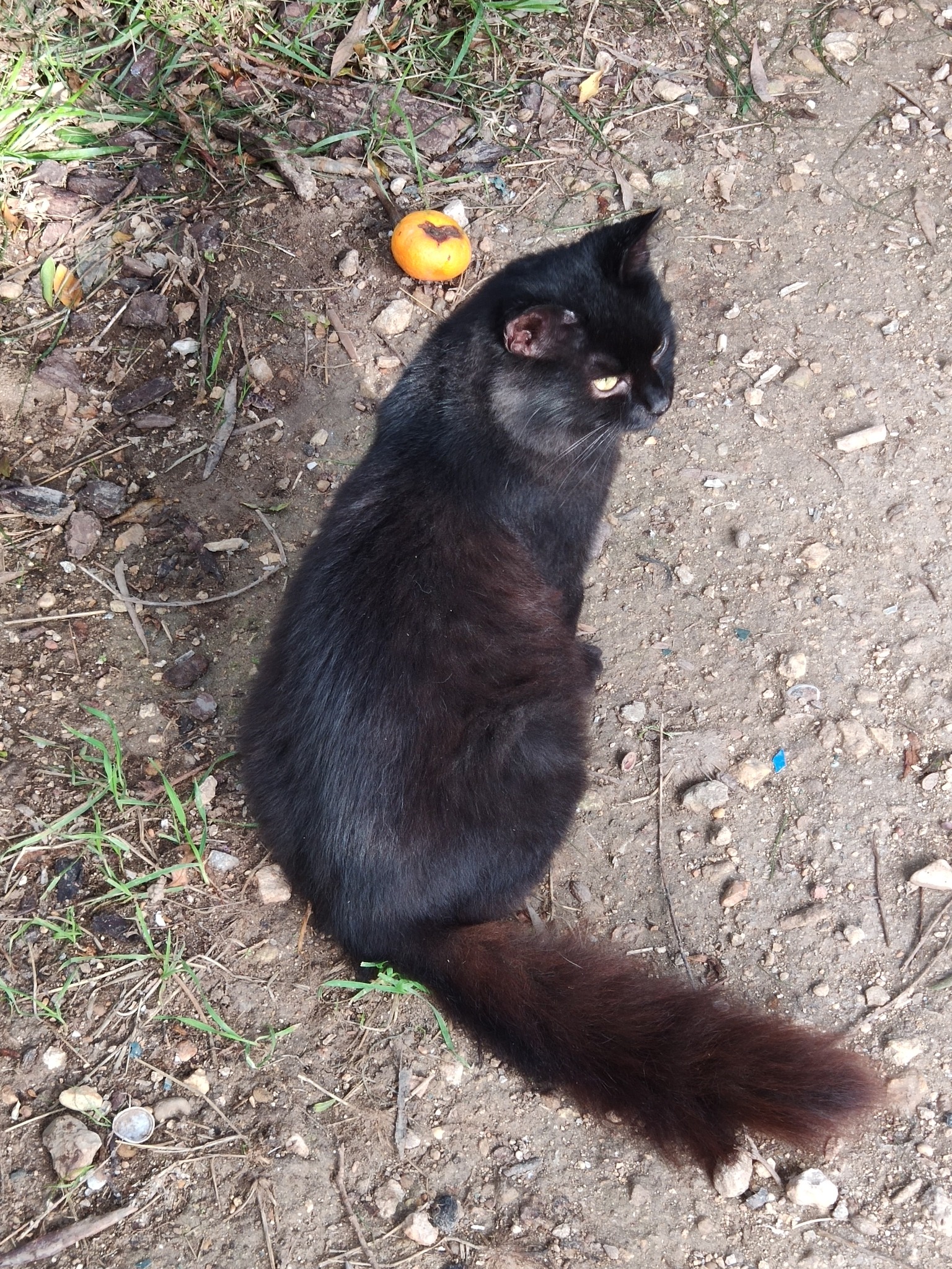 Phantom was brought to the food bowls by her mother who disappeared back into the fields after a few days, leaving her small daughter behind. Phantom’s facial markings reminded us of the Phantom of the Opera’s mask, and so her name came about. Luckily it was a name suitable for a boy or a girl, as we originally thought Phantom was male until s/he became brave enough to come a little closer to the humans, which was when we realised she was a girl.