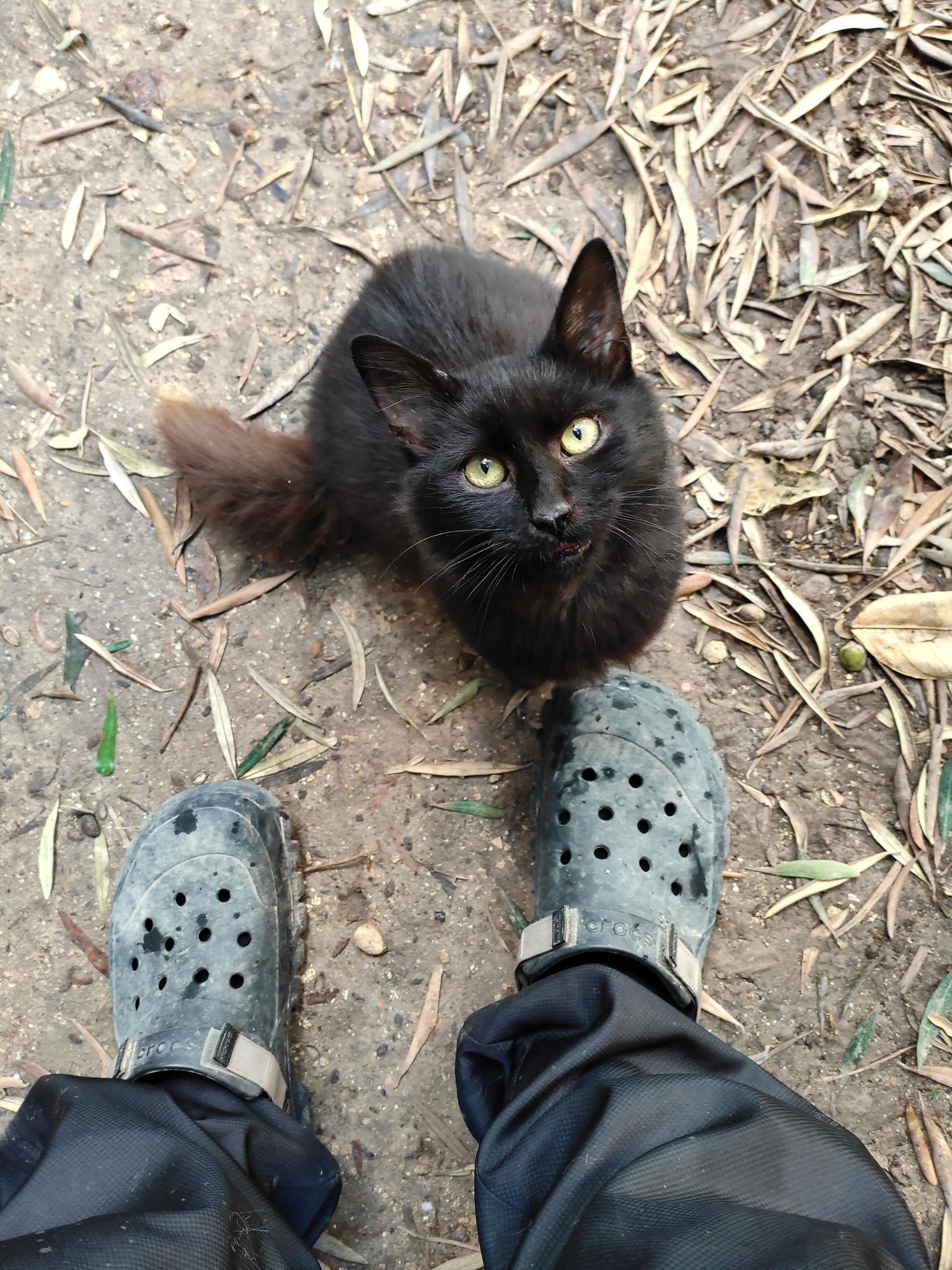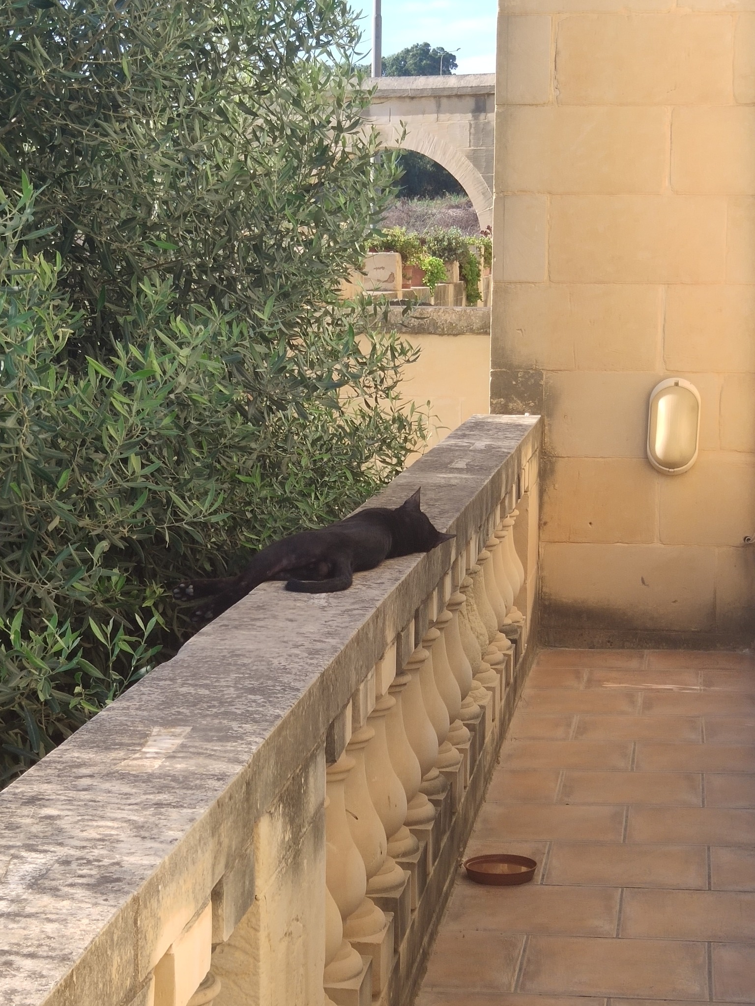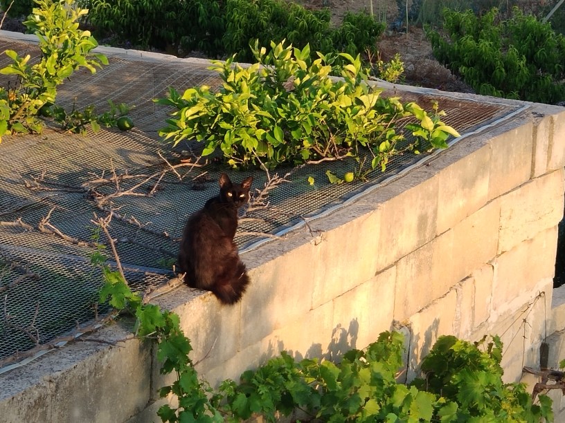 Another true black cat was Muffin, Phantom’s son; unlike Raven, he was an aspiring alpha-male, completely feral, and most comfortable in the fields, although he occasionally came to the terrace to nap.