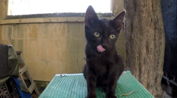 Longtail and Kiwi first arrived together, but Kiwi fell into the category of ‘almost-black’ whereas Longtail was black, head-to-tail. What there relationship was, we never found out. Maybe Longtail was Kiwi’s brother, or her son – or just a companion and guardian. When Ariel, Kiwi’s daughter, passed away as a kitten, Kiwi and Longtail walked down the road to visit here where she lay, in the full sun of the afternoon; how they knew she had died is still a mystery, but they arrived together to pay their respects within twenty minutes of her passing.