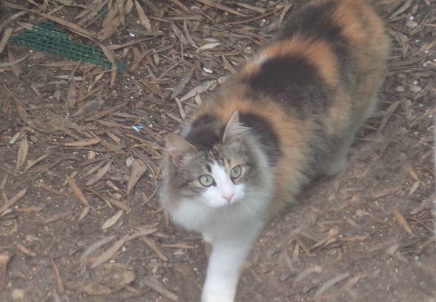 Visitor Cat was one of the first female cats to come to The Cat’s garden in search of food and water. She came from a garden across the fields where cats were also fed, and roamed the fields in between.