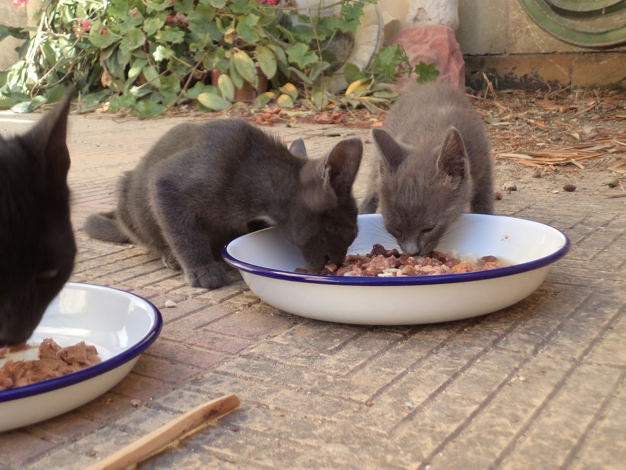 Dawn was no doubt saying ‘and don’t forget to wash your paws when you’ve finished’. At least her kittens were enthusiastic about food, even if they wanted to wade through it.