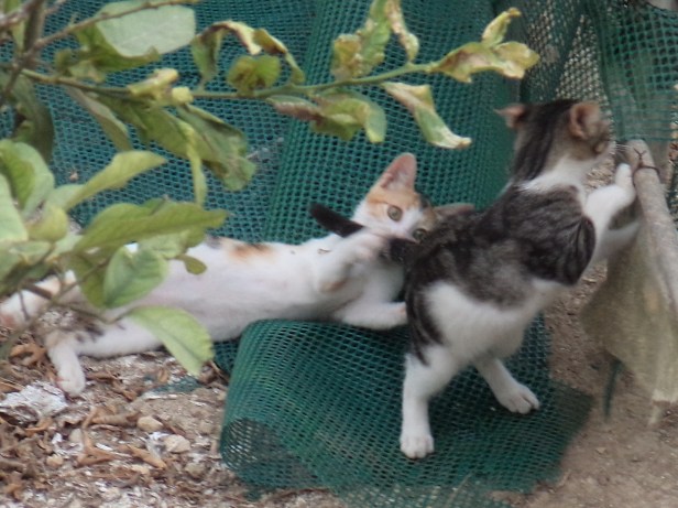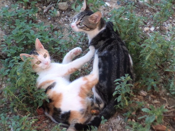 As the weeks passed and they grew, their playing became less kitten-like. But Pedal and Sprocket were never cats who played rough like some kittens do, clawing and biting – their interactions were always basically affectionate.