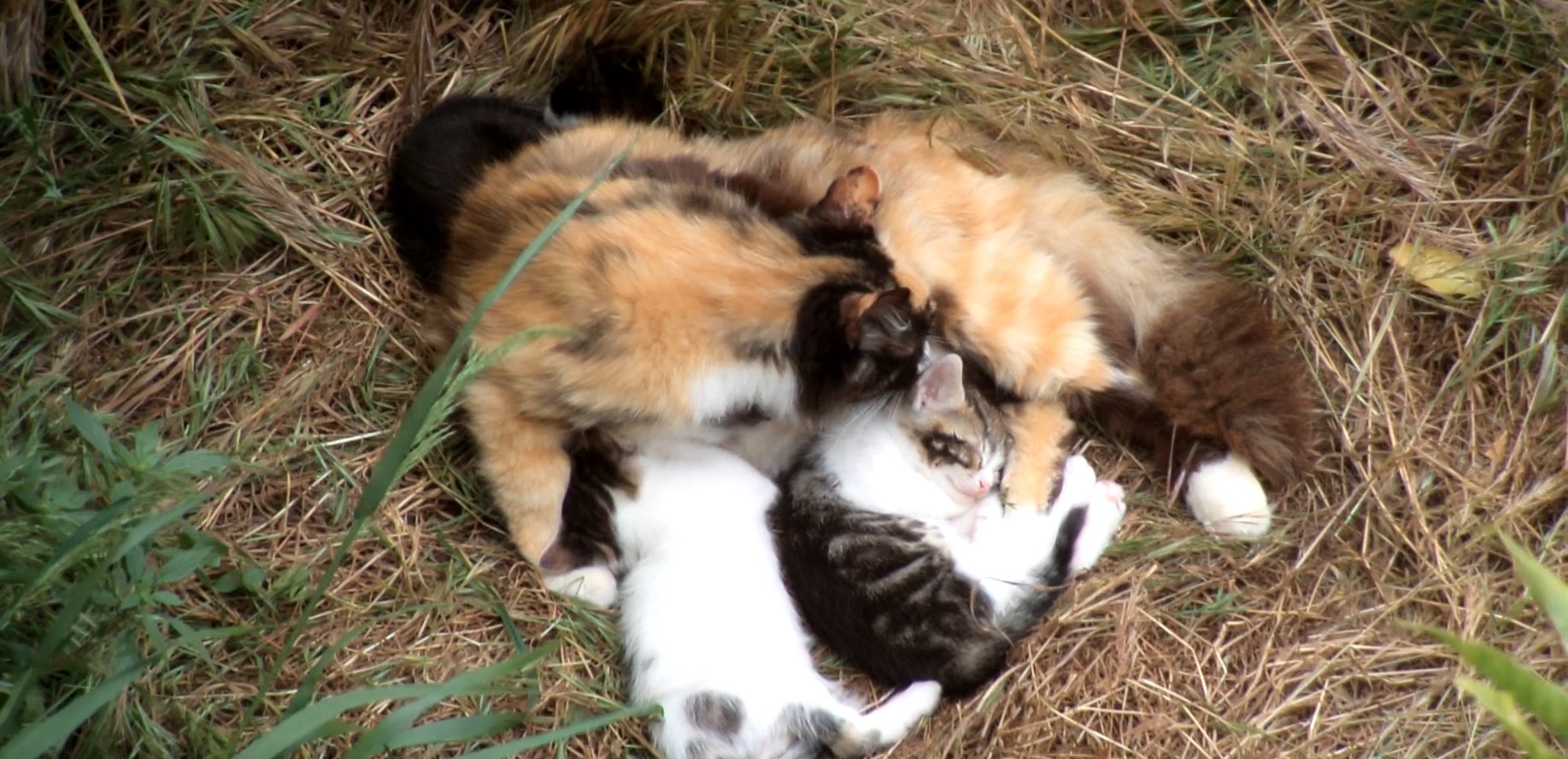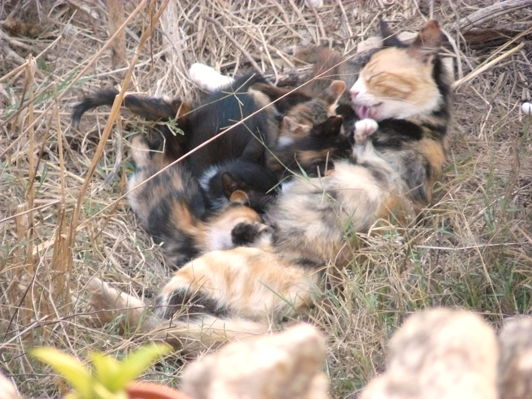The Cat’s kittens were always perfectly presented. Standards were high; kittens always had clean faces and bottoms, and their fur was fresh and washed. Growing up in the fields involved a lot of feeding, grooming and napping, and sometimes all three happened at once.