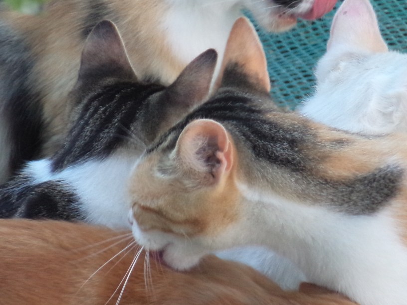 It seemed that the purpose of grooming went well beyond the basics of keeping oneself, or one’s kittens, clean – it also had a social aspect.