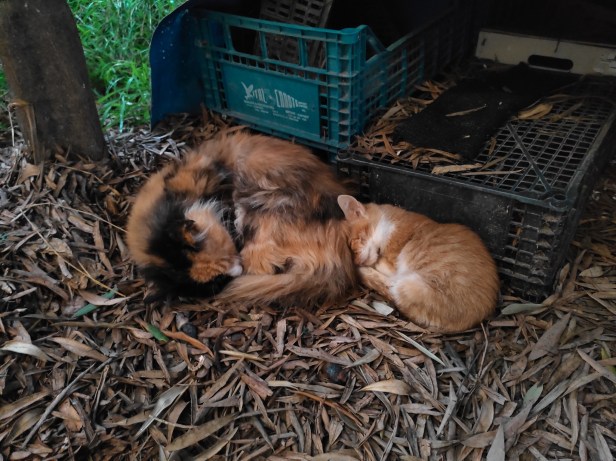 In the autumn of that year, Lychee joined the Garden Family. She was a frail, sickly kitten and, for some reason, she sought out The Cat for comfort, snuggling into her fur and keeping herself warm as they slept together overnight in the dry leaves under the olive tree.