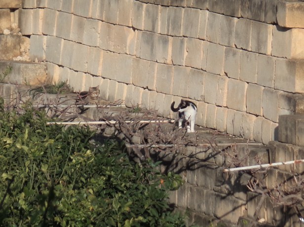 And then another black-and-white cat arrived from the other side of the road – maybe it was Corky’s offspring. We called it Quink (named after the famous brand of ink) and assumed it was male; it was certainly feral, which was why it took a while to discover that Quink was a girl and not a boy.