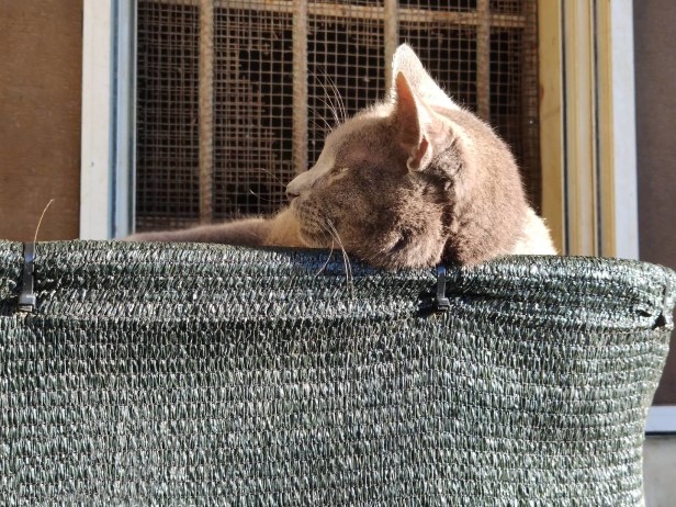Then there was Sunday. He had one of the longest reigns as an alpha-male, first coming to the garden when Ana was resident (and Sunday was known as Mr Grey or The Evil Grey). A year or two later he disappeared (returning around four years after he first appeared) as Sunday, a mature, aging gentleman who was less interested in fighting and more interested in eating and sleeping. Like Saturday, he liked to nap in the garden; he must have felt secure enough to relax there.