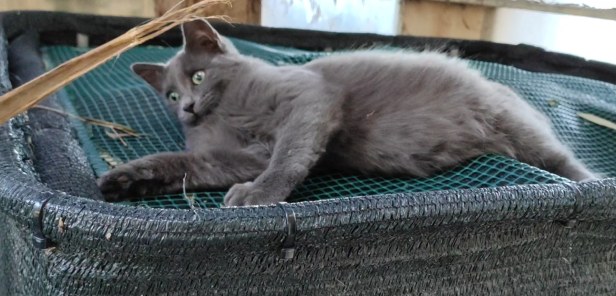 The Cat’s son Oranjiboom left the garden at the age of eleven weeks to be rehomed with his brother Tippex, but later photos show that he kept his fluffy kitten fur and developed an impressive plume of a tail. The boys went to live in another village where they led a happy and fulfilled indoor/outdoor life.