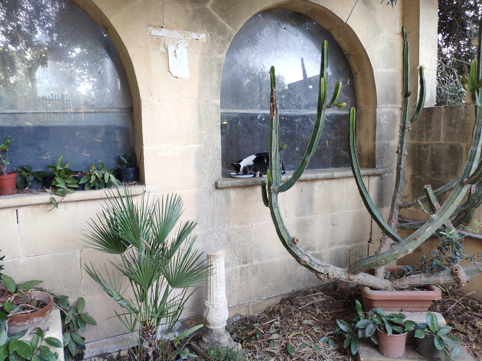 A couple of years later, history was repeated when Kiwi hoped to have her litter in the garden. This was an anathema to The Cat, and she fought Kiwi tooth and claw and drove her out of the garden; all of this was very tricky for Kiwi as she was a CH cat and not as agile or lithe as The Cat (plus she was heavily pregnant). Kiwi had her kittens in the prickly pear bushes in the fields and was always wary when she occasionally visited the garden after that time.