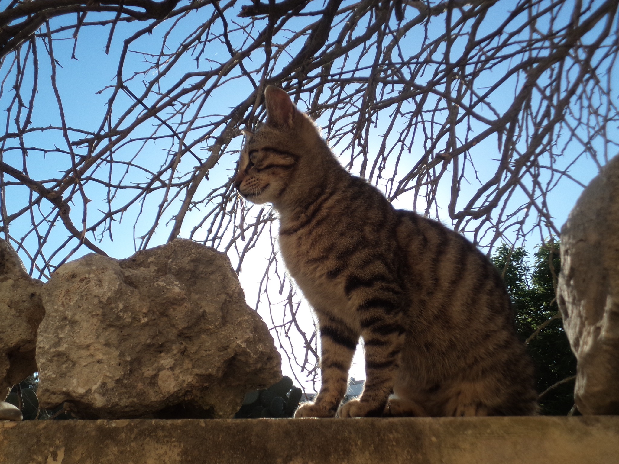 He walked awkwardly for a while and the injury recurred a year or so later, but he coped as he could jump from just one back leg and then use his extra-strong front legs to haul himself up onto the wall. We were happy to see that he had adapted to survive.