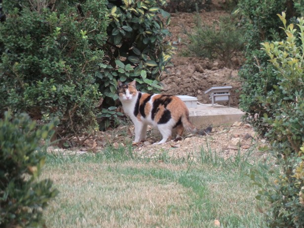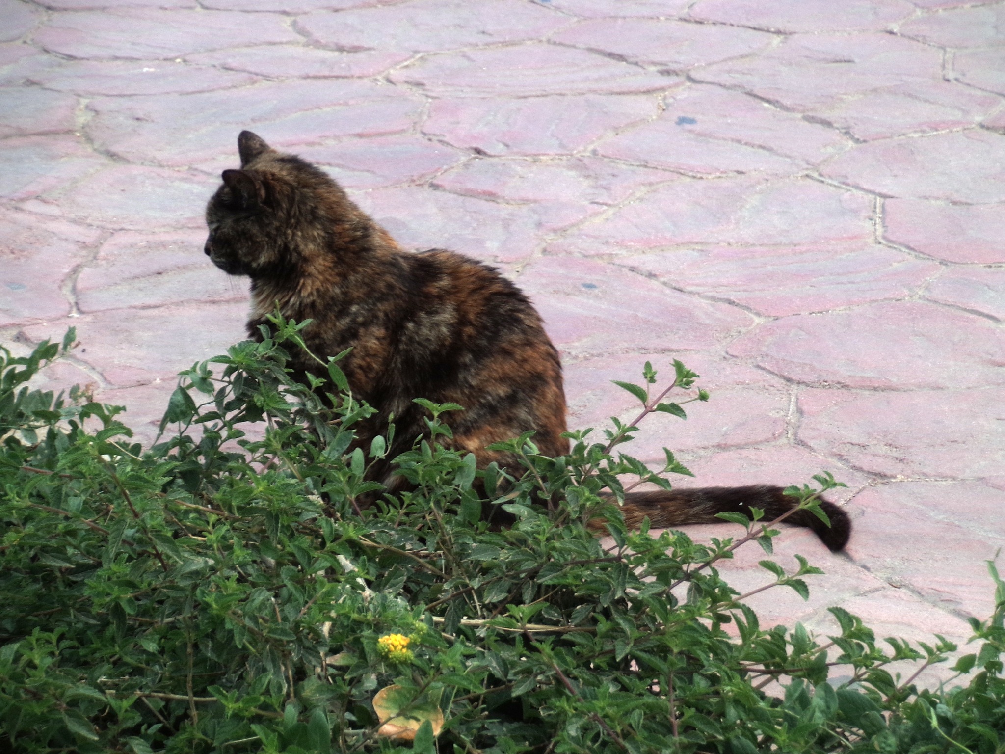 This mature lady does her best to look as though she’s not in the slightest bit interested in the passers-by and tourists, but all the same she does well from their offerings (although she would drop the tastiest morsel on offer if there is the chance of catching a rodent in the flowerbed)…