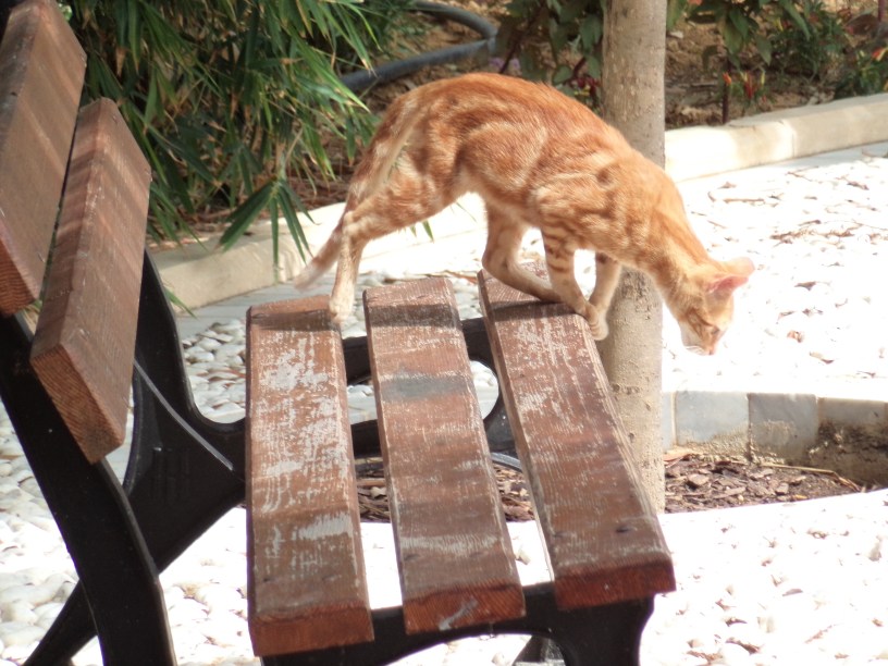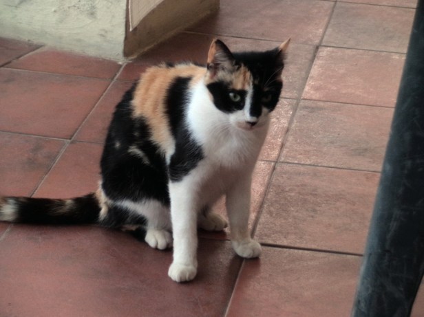 …and this lady is one of several cats who roam the outdoor seating area of an up-market restaurant overlooking the harbour. Diners feel honoured if she chooses their table for her attentions, and her penetrating stare ensures that she has a ready supply of whichever of today’s specials she likes.