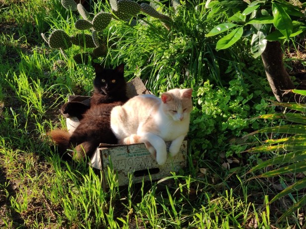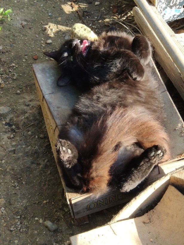 The hardboard tops of the greengrocer’s boxes absorbed the moisture from the air and soon sagged. Uncomfortable though they looked, the cats loved them – to find one which was moulded to your shape must have been the feline equivalent of having a memory-foam mattress.