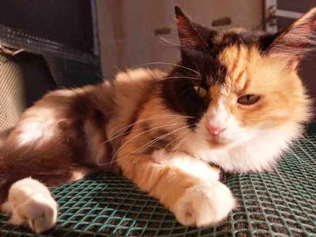Despite growing a longer coat over the years, she never put on weight and remained lean underneath. She ate well but was never motivated by food; she was a delicate and methodical eater but unfortunately developed FOPS (feline orofacial pain syndrome) in later life which sometimes made eating unpleasant.