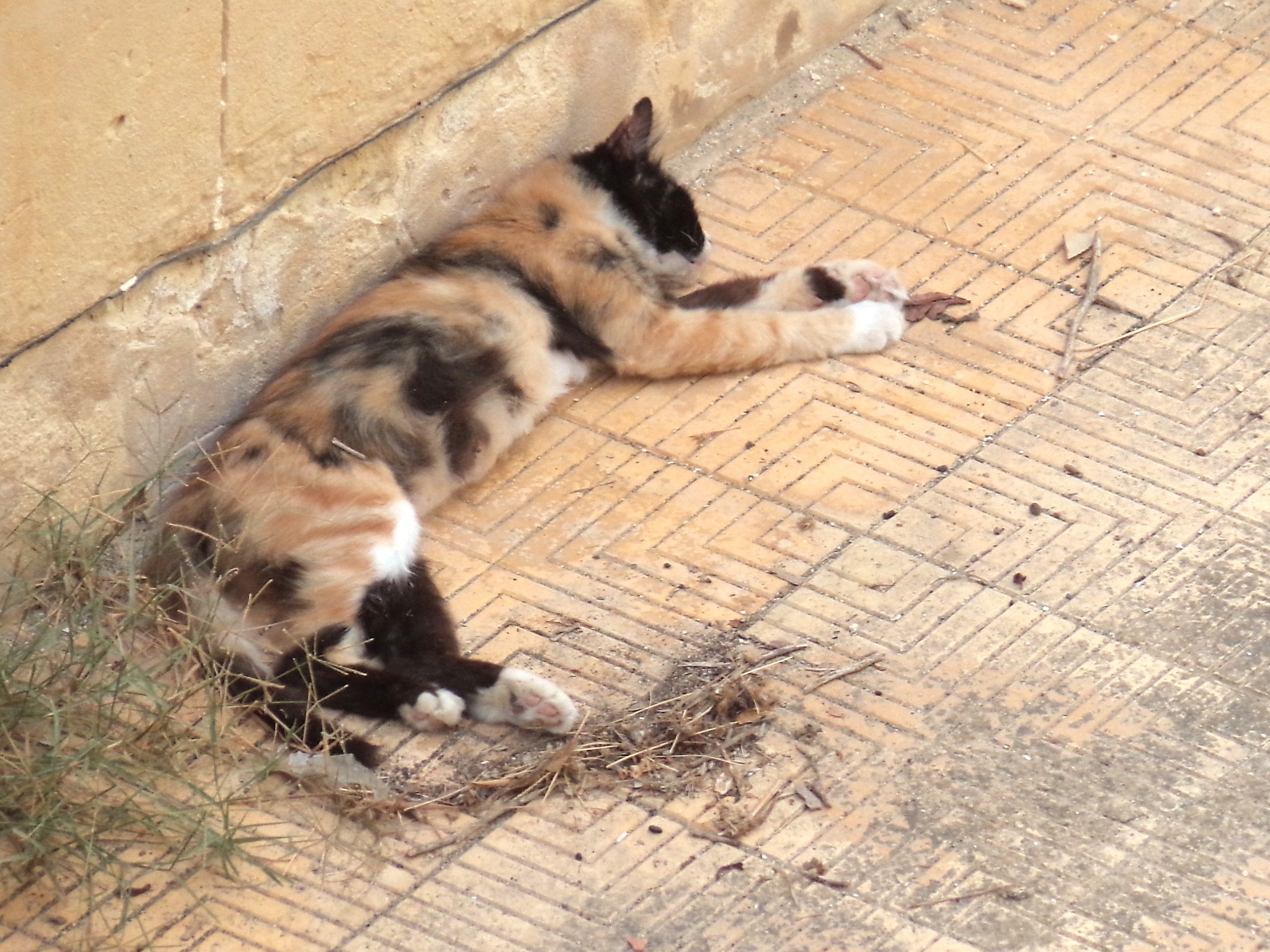 Her tortoiseshell colours continued over her belly, and each leg was different.