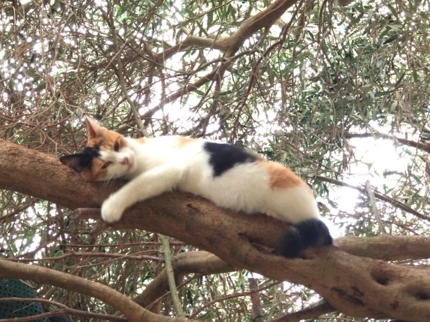 So the olive tree was primarily a well-trodden feline thoroughfare – the equivalent of an ‘A’ road for the cats – and strict rules existed, governing the tree’s highway code and which cat would give way to who on which branches. Rules were made to be obeyed, and they certainly were.