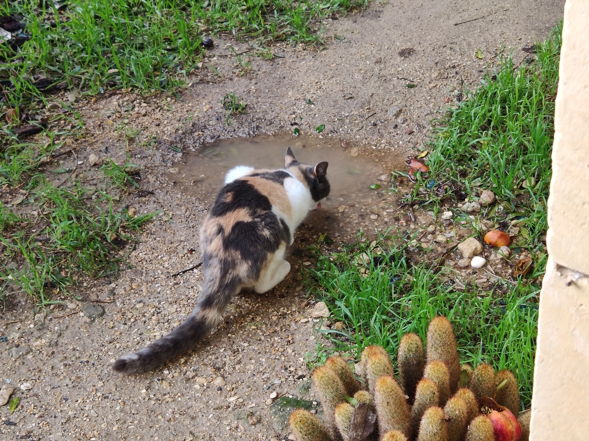 But for some cats, the crème de la crème was rainwater. Beneath that clear surface lay a heady mix of limestone and soil mixed with the water, and many cats headed for puddles after the rain in preference to bottled or well water (as Moonstruck was doing here).