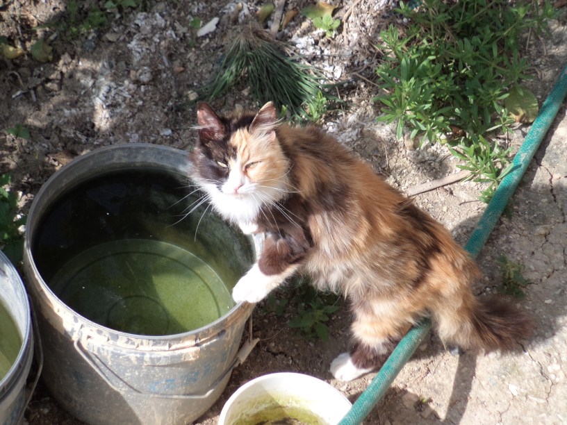 And The Cat herself (undoubtedly a connoisseur of the finer things in life) chose a pail of stagnant water with a sophisticated green tinge.
