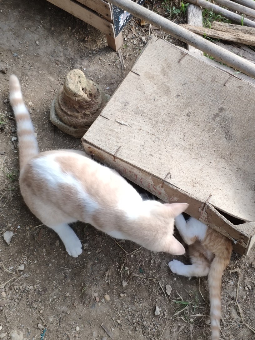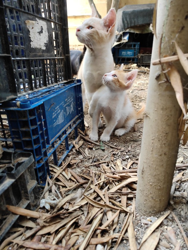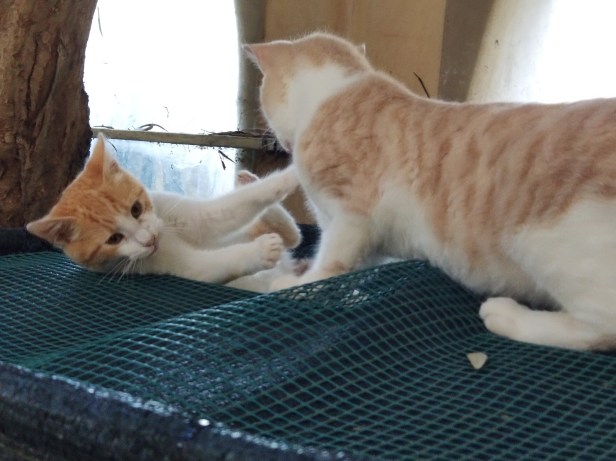 Sherpa was a little older in this photo where he and Pascha were tussling on the water tank under the olive tree. Pascha was really big for his age, strong and powerful, and Sherpa was fast and nimble. They learnt a lot from each other.