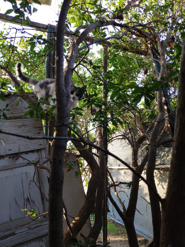 There was nobody on the stool at the end of the feeding station, patiently waiting to see if there might be a second or third breakfast … was there, Satsuma?