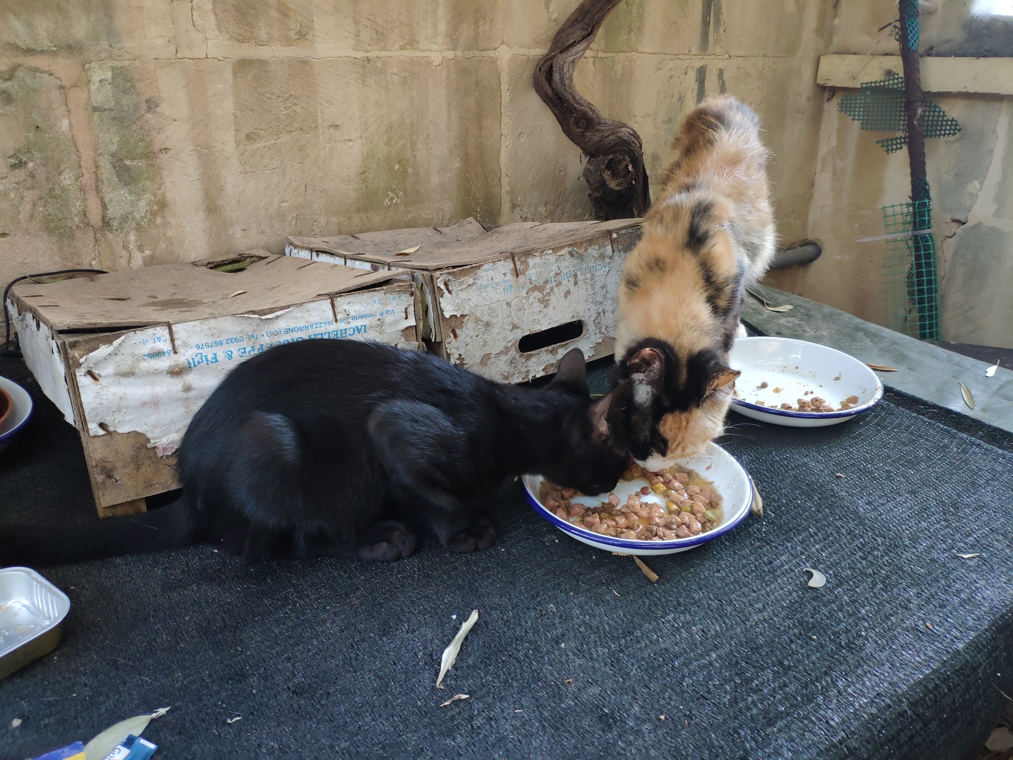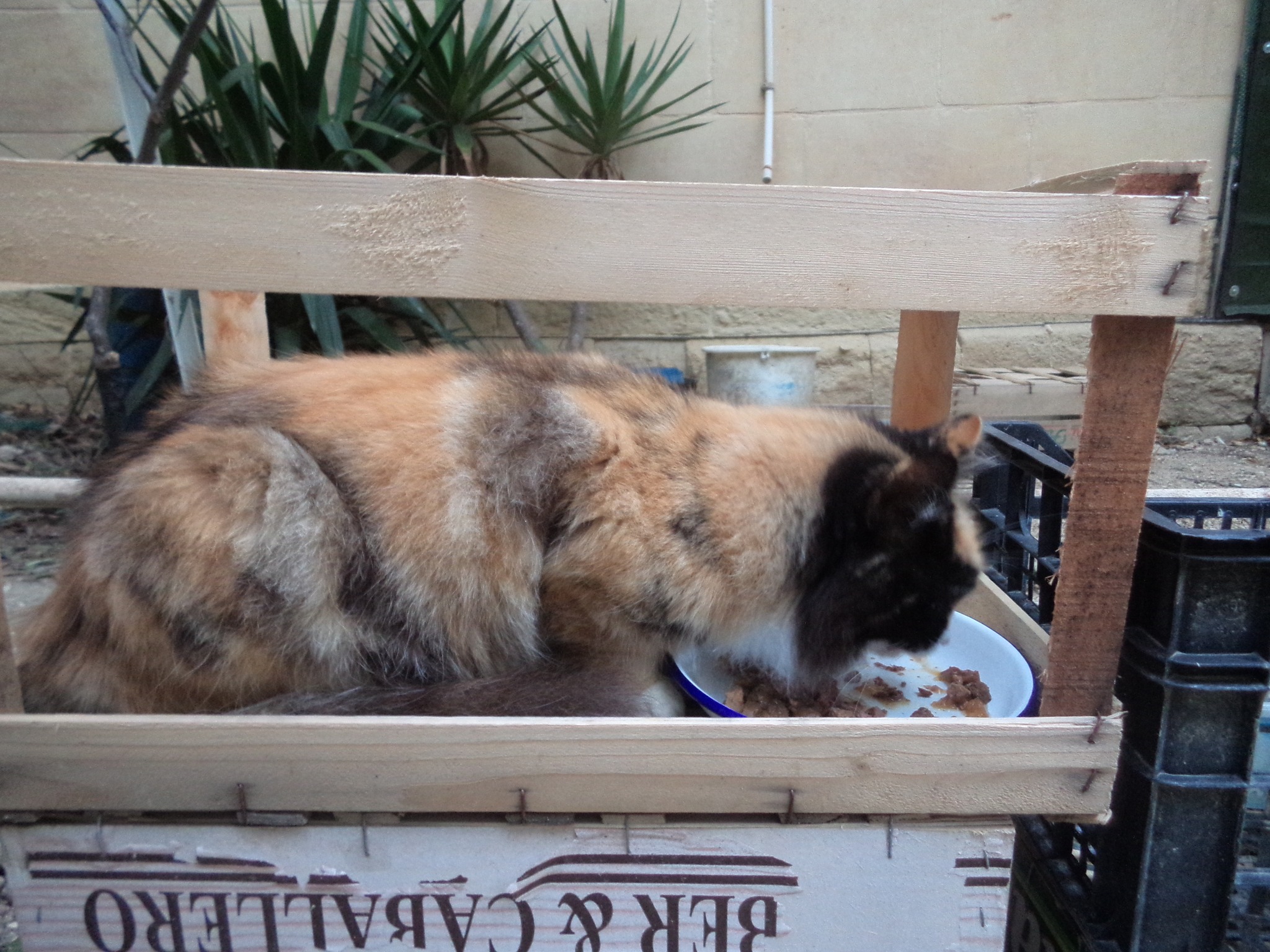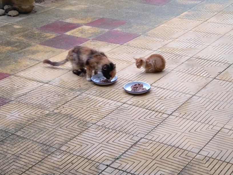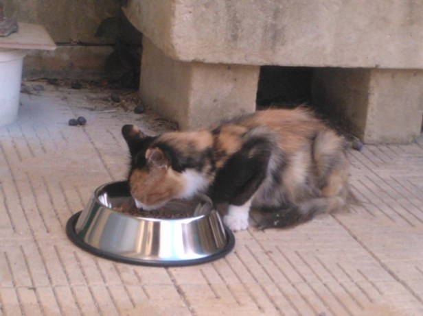 (The header photo shows The Cat eating in the drive while Lychee looks on. Lychee was a frail kitten and was adopted into the Garden Family and, within a day or two of this photo, was on antibiotics for her infection).