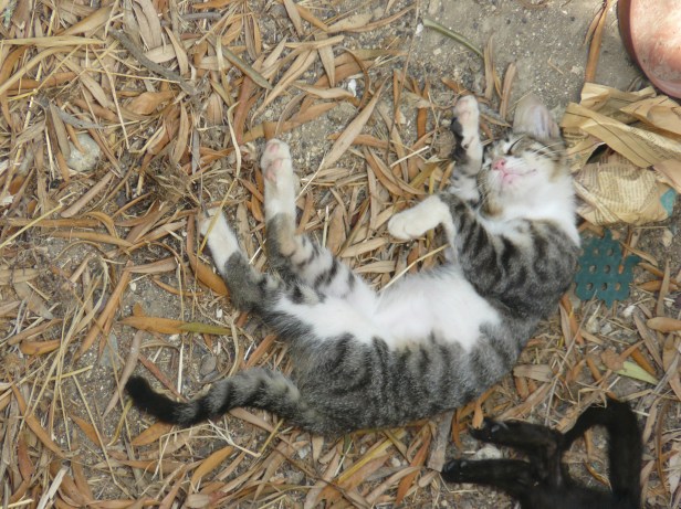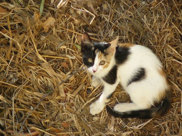 The only one who never made eye contact was Tabby, but Ginge, Blackie and Splodge were curious enough about these big, strange, humans to sneak a peek every so often, and here’s the proof.